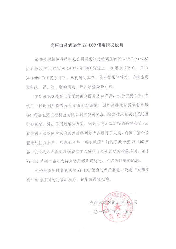 華強化工集團股份有限公司使用證明