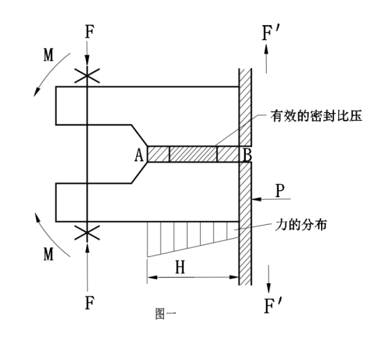 當F與F’不在同一條直線(xiàn)時(shí),必然形成一個(gè)力偶M,內壓P有可能波動(dòng),導致密封比壓降低。